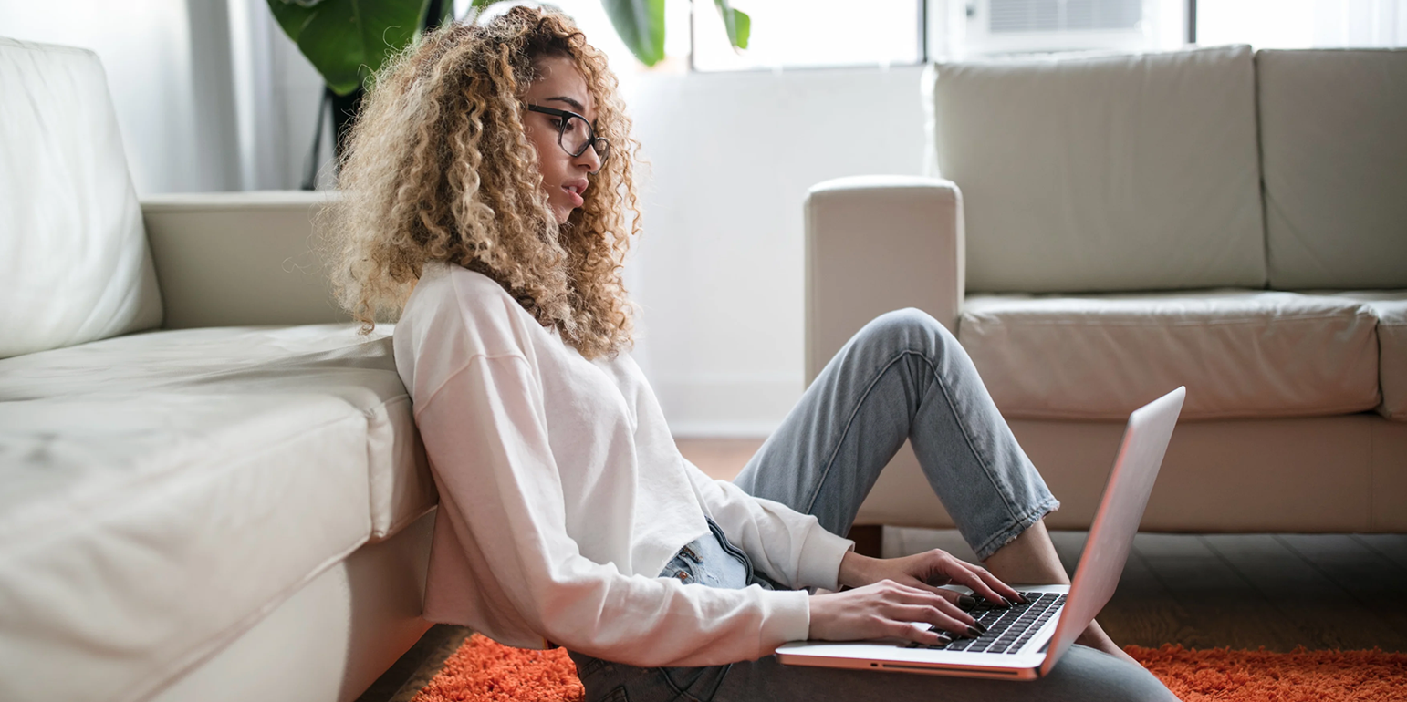 Good lighting is important for both your productivity and your mental health. Don’t be afraid to move some lamps around in your house to prioritize good lighting in your work space or office, or to turn your desk to face a window to allow natural light to reach you throughout the day. The key to good lighting is layering — a mix of natural light, a warm light source that illuminates the whole room, and a light that directly illuminates your desk.